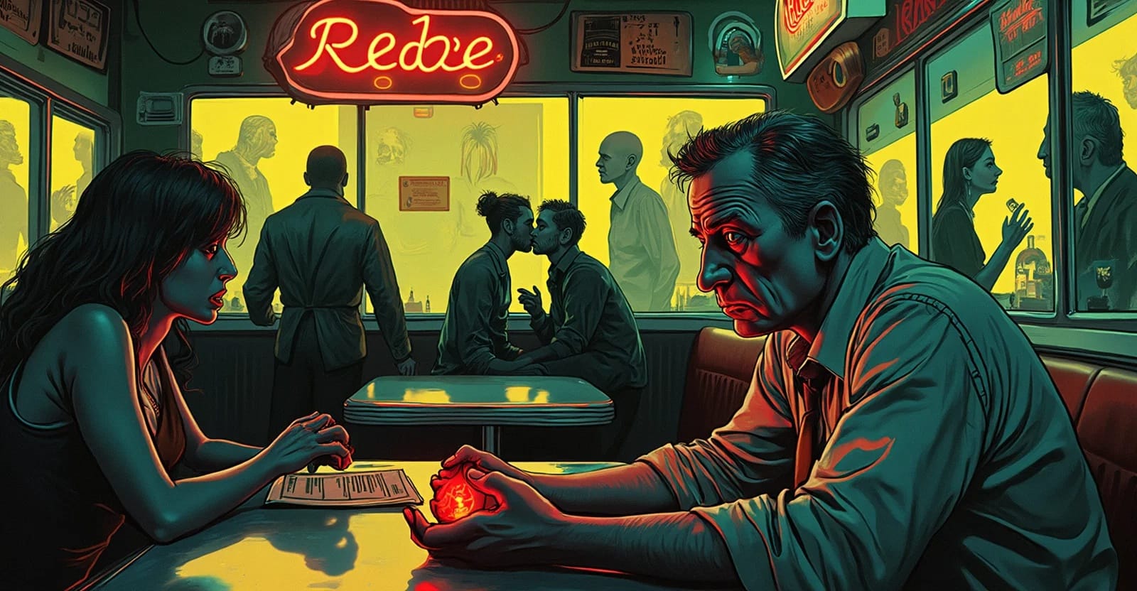 The diner scene provides a stark reminder of the role that dreams and lies play in our understanding of ourselves and the world around us. Dee's misuse of Dream's ruby distorts the occupants' perception of reality. As these individuals are forced to confront their deepest fantasies and lies (often interchangeable with dreams in the realm of the subconscious), we see the human imagination let loose in its raw, unfiltered form.