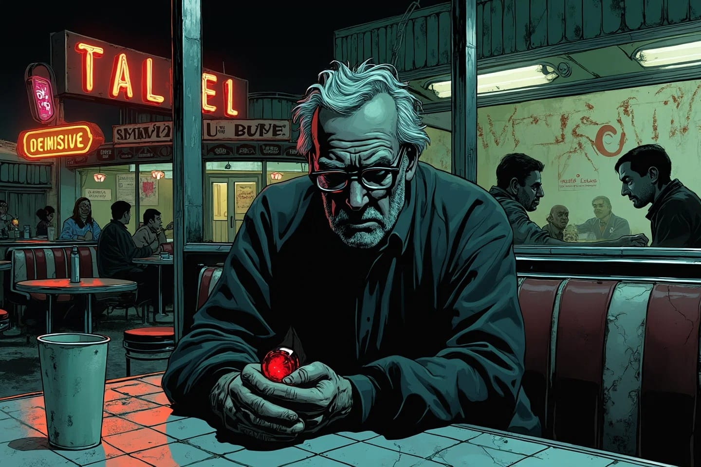 So, in essence, the 24-hour diner scene from "The Sandman" can be viewed as a metaphor for the chaotic, often painful process of innovation itself, fuelled by our dreams and our lies, pushing us beyond our comfort zones into new realms of discovery and understanding.